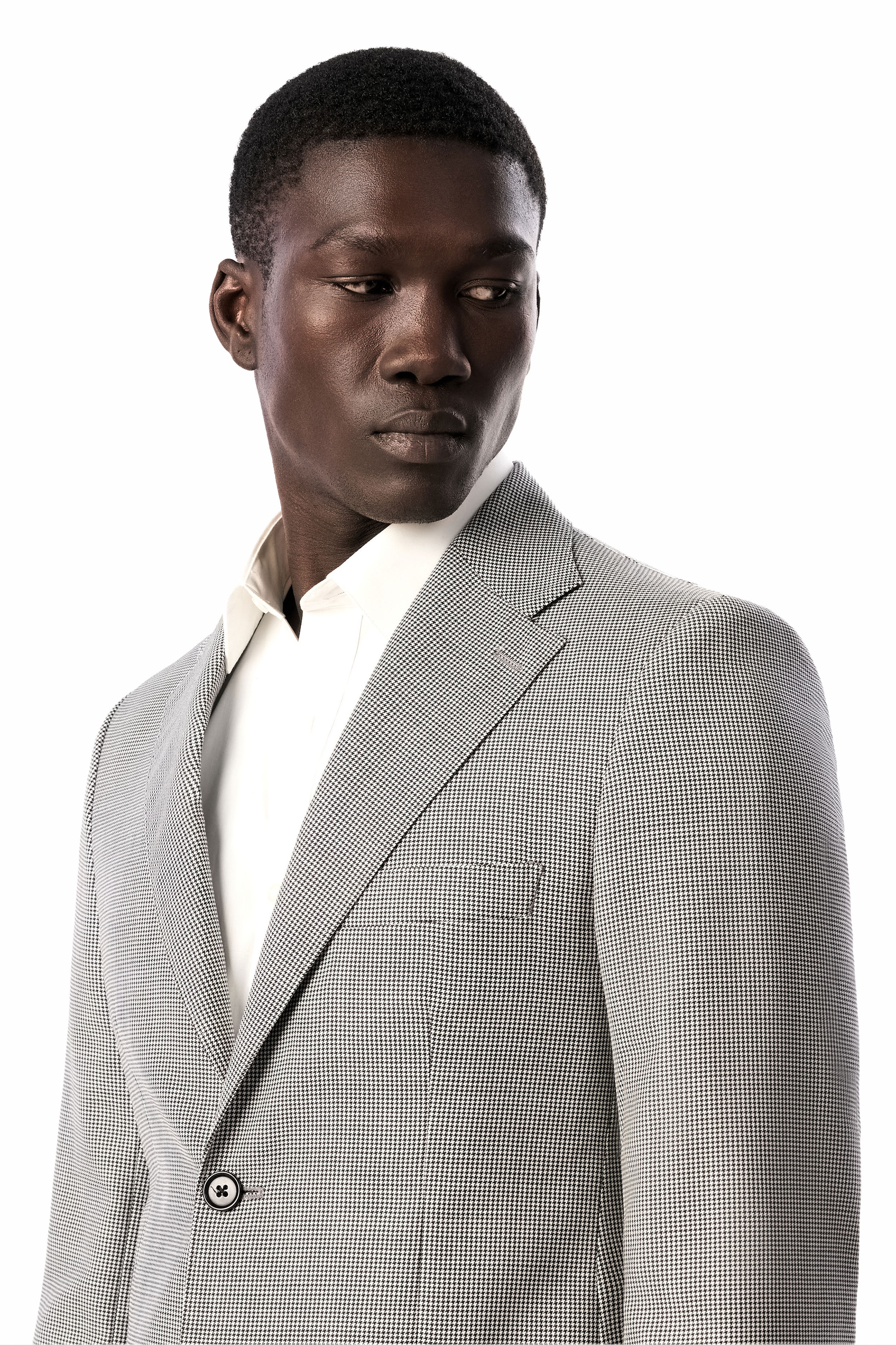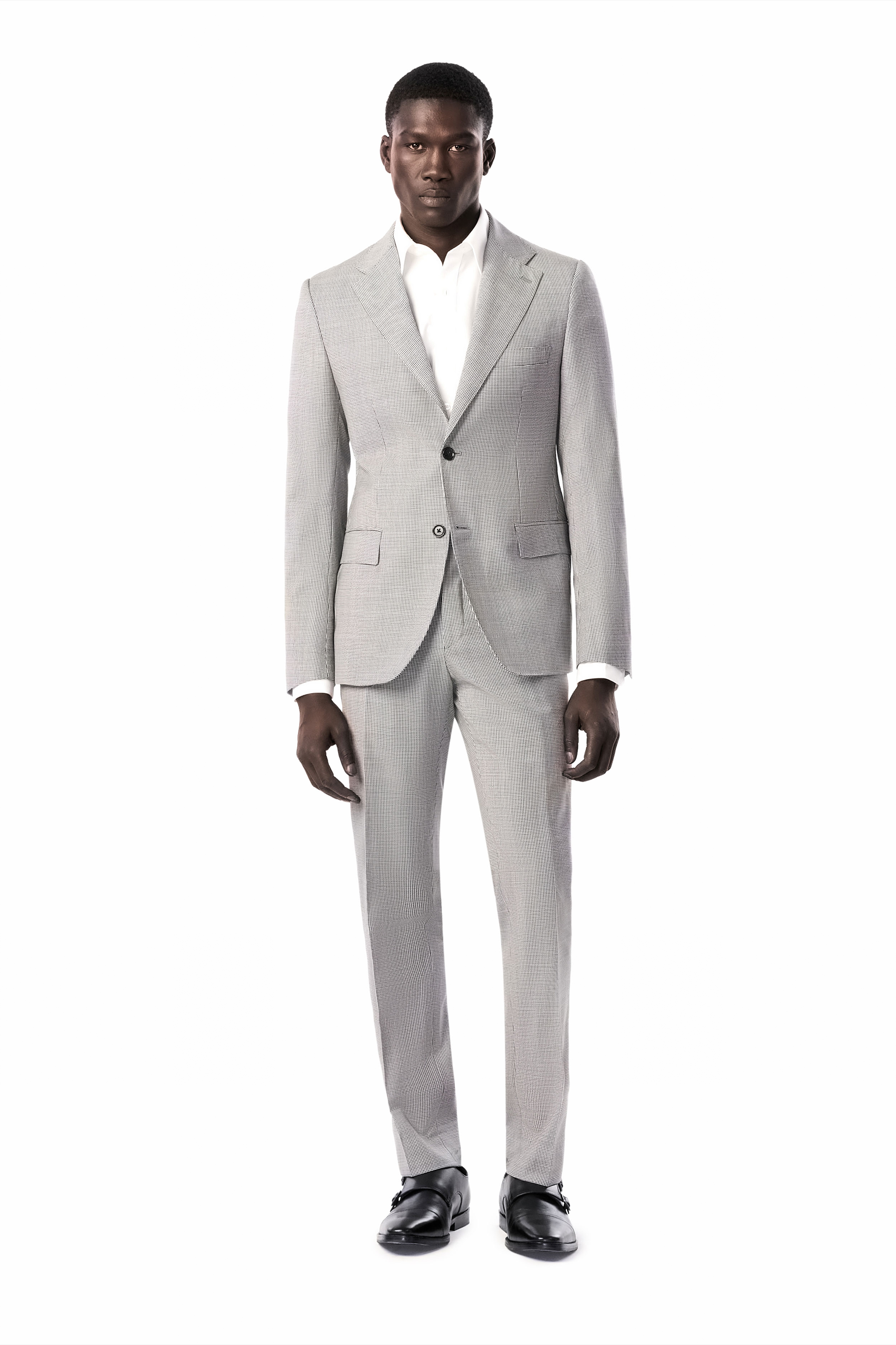 With its iconic black and white houndstooth pattern, 100% Italian wool construction, 1/2 canvas lining, and meticulous Italian craftsmanship, this suit from The Heritage Collection is a testament to timeless style and modern sophistication. The two-button jacket, notch lapel, and slim fit create a striking silhouette that elevates any occasion. For the man ready to make a lasting impression, this suit is the epitome of elegance and individuality.