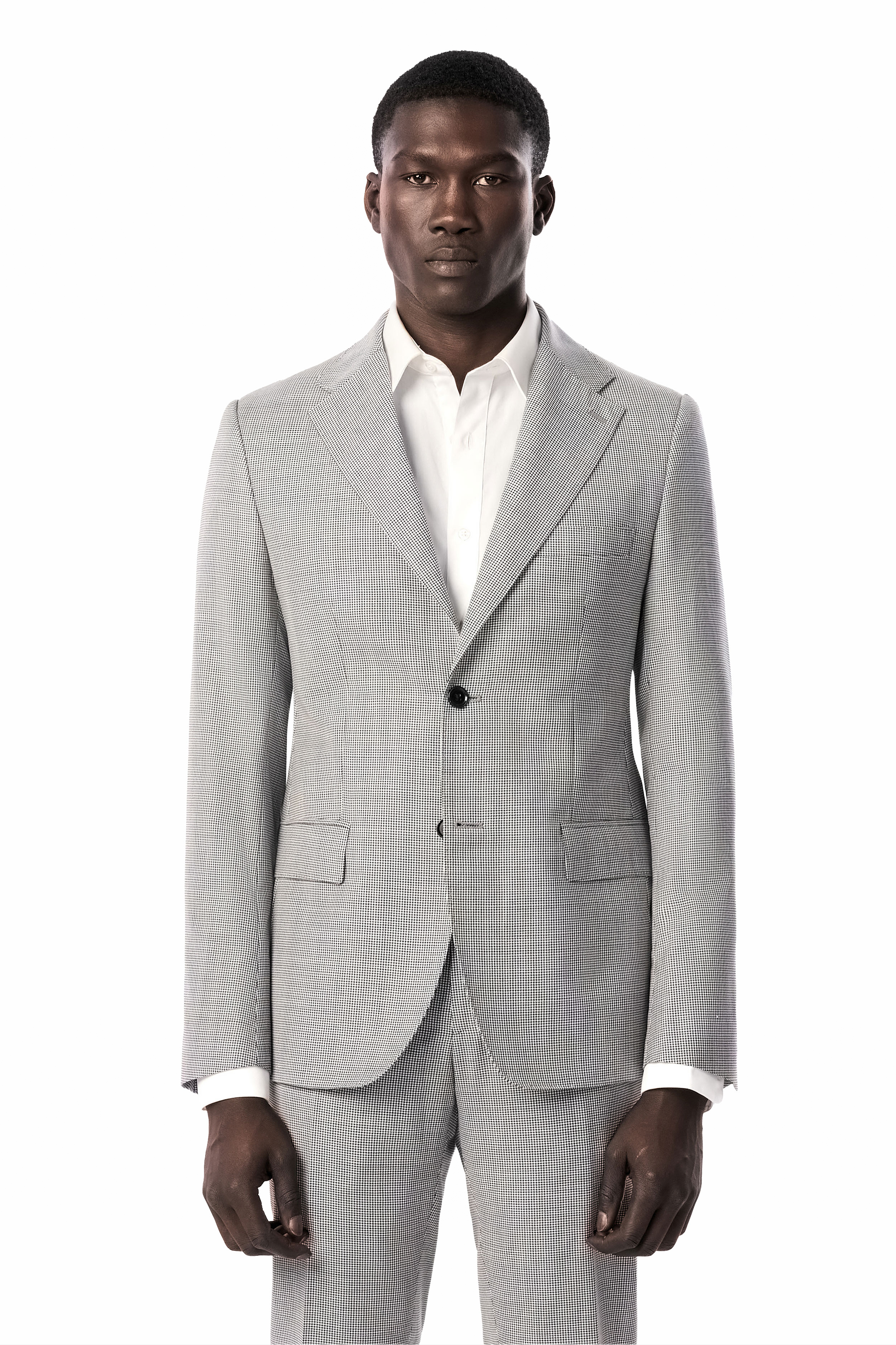 Embrace the enduring charm of the black and white houndstooth design, a pattern that exudes sophistication and versatility. Crafted from 100% Italian wool, this suit offers a luxurious feel and impeccable drape, ensuring you look polished and feel confident. The iconic houndstooth weave, combined with the premium 1/2 canvas lining, provides breathability and durability, making this suit a standout choice for the discerning gentleman.