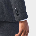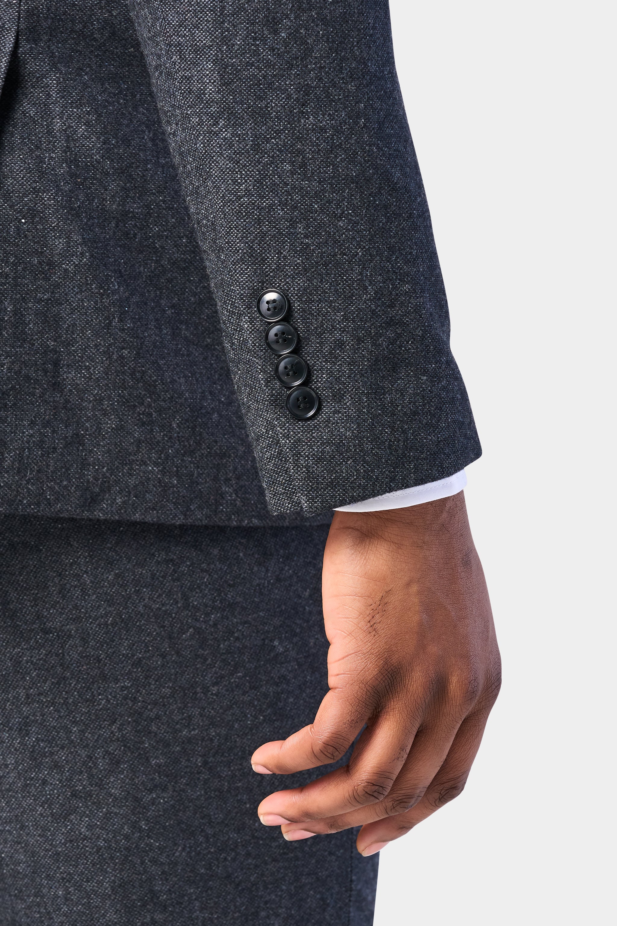 Carefully made from a soft and refined wool blend tweed fabric, the lightweight fabric offers comfort and flexibility while preserving the jacket's fitted structure. The material is wrinkle-resistant for a neat appearance. The rich charcoal gray color reflects elegance and mystery, perfect for formal events. The harmonious combination of the charcoal gray color and the tweed fabric enhances the suit's style and appeal.