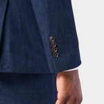 Furthermore, this refined dark blue three-piece suit provides a polished foundation for a variety of looks. For traditional flair, wear it with a crisp white shirt, silver tie, and smooth oxfords. For a modern edge, pair it with a fitted shirt, skinny tie, and monk-strap shoes. However you style it, this navy tweed suit has you looking sharp and stylish.