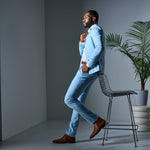 Make a stylish statement in this refreshingly vibrant Sky Blue 2 Button Suit that leaves you with a stunning appearance at every occasion. Embrace the cool, confident look of this modern blue suit. No matter how you wear it, this eye-catching sky blue suit adds a sunny touch of tailored elegance to your warm weather celebrations.